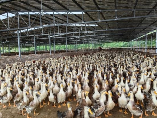 转机来自乡党委政府和驻村工作队的多次产业调研,决定依托当地的自然资源、生态优势和村民的养殖经验及川农大的技术支持,因地制宜发展肉鸭养殖产业。立项、审批、建设......解决资金短缺、征地、土地审批等问题,在上级部门、乡党委政府、驻村工作队、村两委干部及全体村民等各方共同努力下,杏家村肉鸭养殖基地建设如火如荼进行。2023年11月,养殖基地竣工投用,首批8000只鸭苗正式进场。