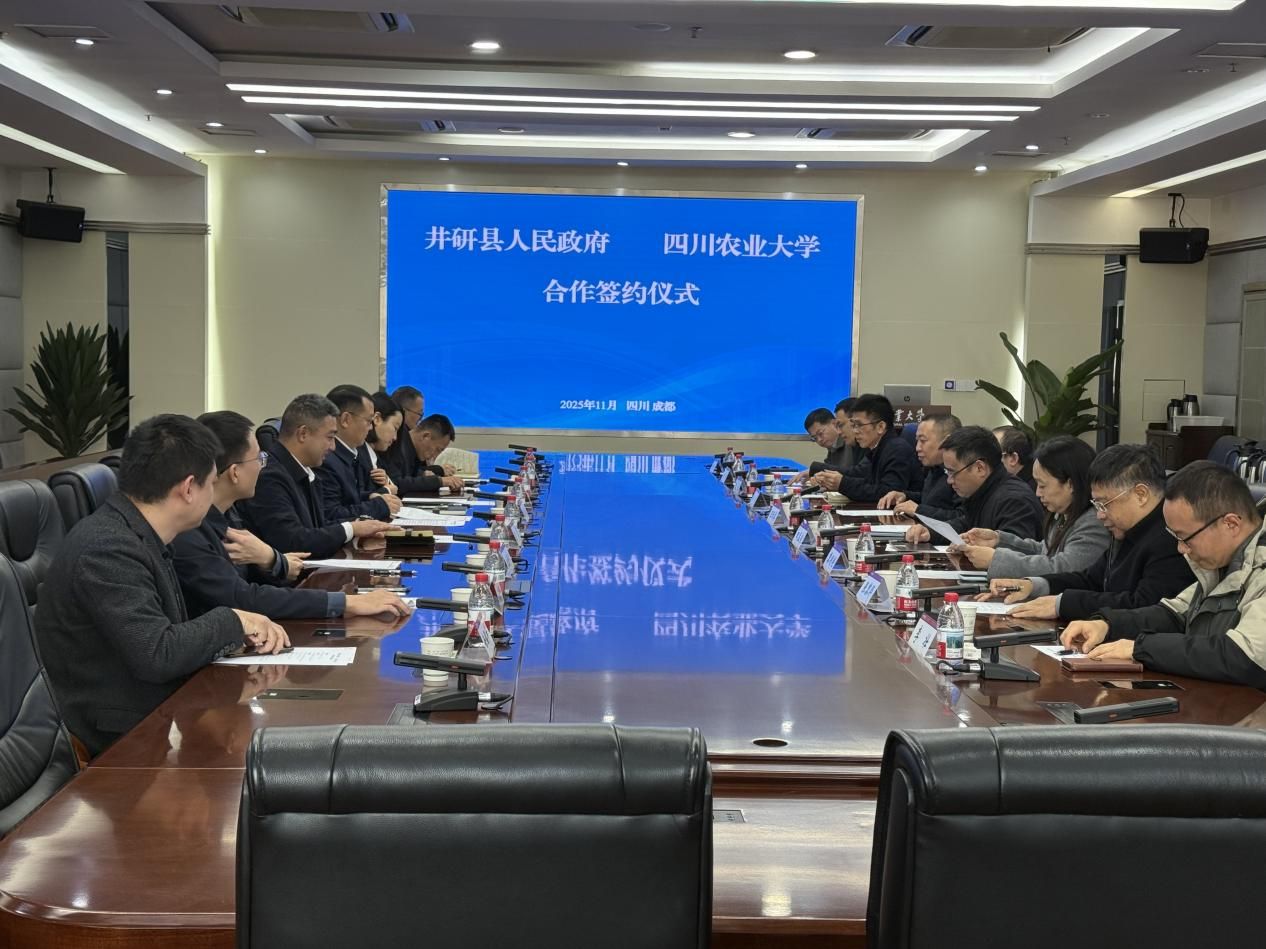 在双方见证下,我校科技管理处处长田孟良与井研县副县长雷蒙代表校地签署协议。陈剑波在讲话中表示,井研将搭建平台、落实保障,全力推动合作见效。王际睿强调,学校将发挥科技人才优势,拓展合作广度与深度,为井研农业高质量发展贡献川农大力量。
