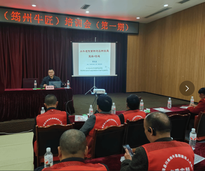 为了将科学技术真正转化为养殖户的生产力,四川肉牛创新团队岗位专家贾先波还为筠连县肉牛养殖业主、繁殖员和兽医师等100余人开展了2场专题技术培训。培训内容紧扣肉牛遗传育种与品种改良的前沿技术与实用方法,通过深入浅出的讲解,有效提升了参会人员对川南山地黄牛等我国优秀肉牛遗传资源的认识、品种改良的专业技能和肉牛的科学养殖水平。