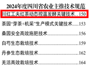 红茶获“茶王”称号及其发酵技术被遴选为2024年度四川省农业主推技术规范